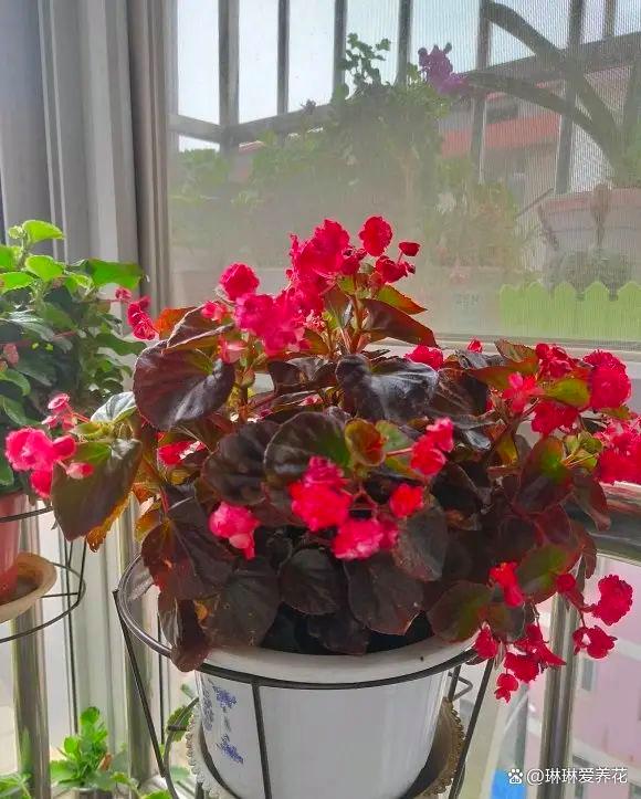 4.四季海棠 四季海棠,一年4个季节,花期陆陆续续开放不断,春天秋天是最适合上盆种植的,上盆栽种好以后浇上水放在有光照的地方,一个礼拜新的根系就可以恢复生长,秋天养护秋天就可以开花,养护得当,到了春节的时候,花期照样可以盛开。