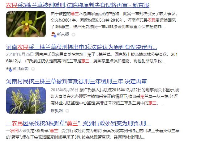 就像2016年河南一名农民,就因为在干活的时候,在田埂上看到了几株兰花,觉得不如挖回家养,他们那这种事是很寻常的。 但谁知道,就偏偏他出事了,被罚了三千块钱不说,还被判了三年。