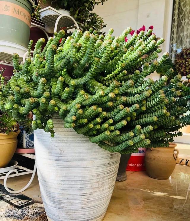 相信大家最关注的还是他的培养方式,它最喜欢阳光充足的环境,并不耐阴,一定要接触柔和的光照。 夏天可以进行遮挡强光,不要直接放在南面的窗台,不然容易晒伤,到秋天可以多接触阳光,能让叶片着色更快,迅速变成果冻肉。 此外,钱串子可不要多浇水,它的耐旱性超级好,但浇水过多,叶片会发软,一碰就掉,对生长不利,甚至造成死亡,大概每7到10天补充一次透水就行,前提是需要土壤肥沃保水性以及通透性好。 金钱兜