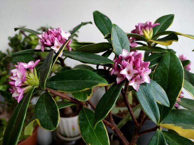 我最喜欢金边瑞香的,反而是它开花时,散发出来的香气,一个屋子里,养上一盆金边瑞香,隔着老远,就能闻到淡淡的,时不时飘过来的清雅之香。 而且,金边瑞香很好养,一个阳台,或者散射光好的客厅,就能养出不错的金边瑞香了。