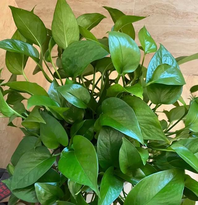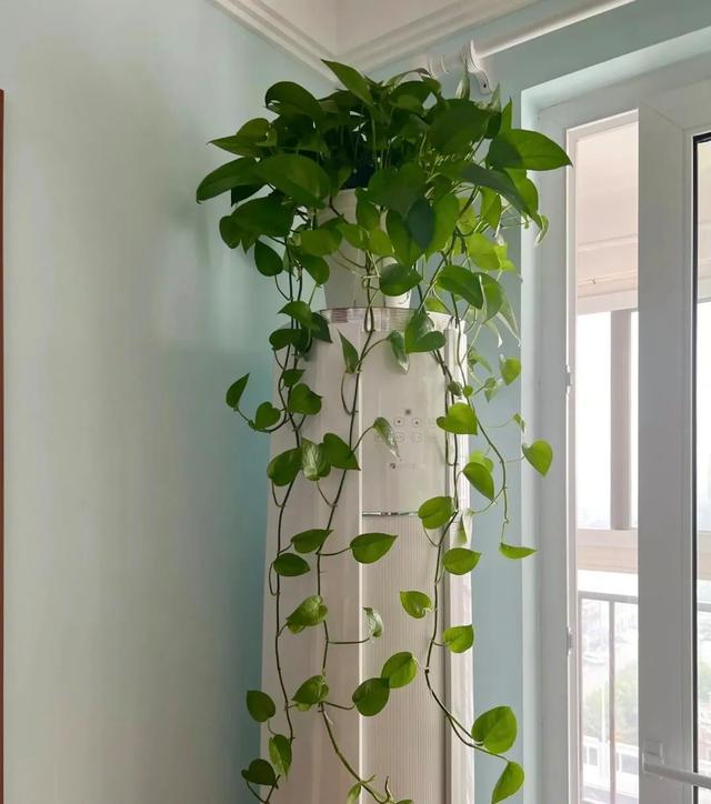 绿萝是多年生草本植物,很多人喜欢养绿萝,大多是因为绿萝可以吸收甲醛,它的外形简单,叶片青翠,却有着独特的作用,比如悬挂于窗前,或者摆放在高处,一条条绿色的藤蔓,自由下垂,营造出一种小森林的氛围感,十分清新。