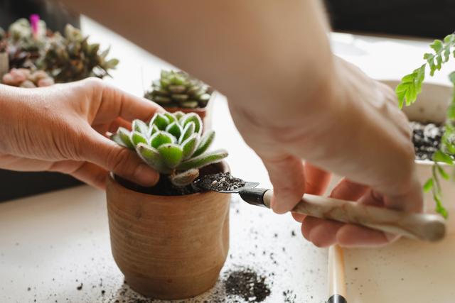 3. 施肥:多肉植物需要适量的营养才能保持生长。在秋季,可以适量施肥,每隔一个月施一次腐熟的有机肥或复合肥料。注意不要过量施肥,以免造成植株过度生长,影响观赏效果。 4. 换盆:对于一些生长过于密集的多肉植物,可以考虑换盆。在秋季,将植物从原盆中取出,修剪过于密集的根系,然后栽种到新的盆中。新盆应比原盆大一些,以利于植物的生长。