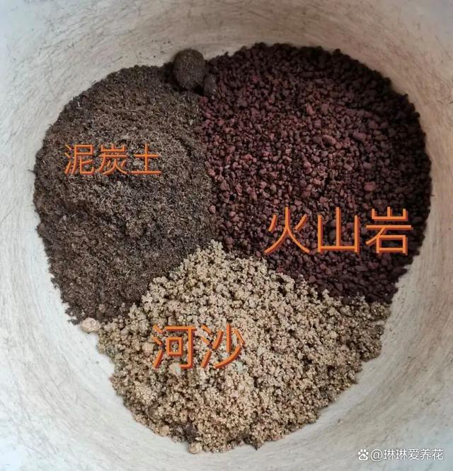 火山石有两种,分为黑色和红色两大类,建议大家购买3~6毫米颗粒的红色火山石,10斤的价格大概只需要十几块钱就可以买到,再从网上花个十几块钱买一点纯的泥炭土,两者按照1:1的比例混合,搅拌均匀备用。