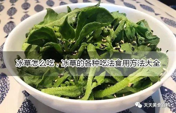 3、凉拌冰草 取冰草500克、炒熟的黄豆5克、熟芝麻3克、剁椒酱1勺、生抽3勺、白醋半勺、焙煎芝麻沙拉汁5克、凉白开30克。准备好原材料,冰草清洗干净,摘成小段。将炒熟的黄豆用擀面杖碾成碎瓣,用一个小碗,加入自制剁椒酱、焙煎芝麻口味沙拉汁,加入生抽、白醋、熟芝麻、黄豆碎瓣、凉白开,搅拌均匀,蘸着酱料汁就可以吃了,不仅美味,并且含有丰富的营养物质,可以补充营养。 4、冰草沙拉 冰草300克、西红柿半个、柠檬半个、蓝莓20粒、盐焗腰果12粒、橄榄油适量。准备好原材料,西红柿切块、柠檬切片备用。用手把冰草撕成小片,加入切好的西红柿和柠檬。放入洗好的蓝莓,淋入适量橄榄油,加入盐焗腰果,搅拌均匀即可装盘,有治疗和预防咳嗽以及哮喘的作用。 二、冰草的各种做法大全 凉拌冰草 1、冰草洗干净。
