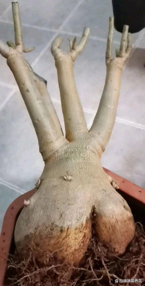 像这种大型的块根植物,在养护上没有丝毫的难度,上手就可以养活,因为在整个养护周期中,并不需要任何的养护技巧,无非就是浇水和晒太阳,满足这两个条件就能把沙漠玫瑰给养活了。