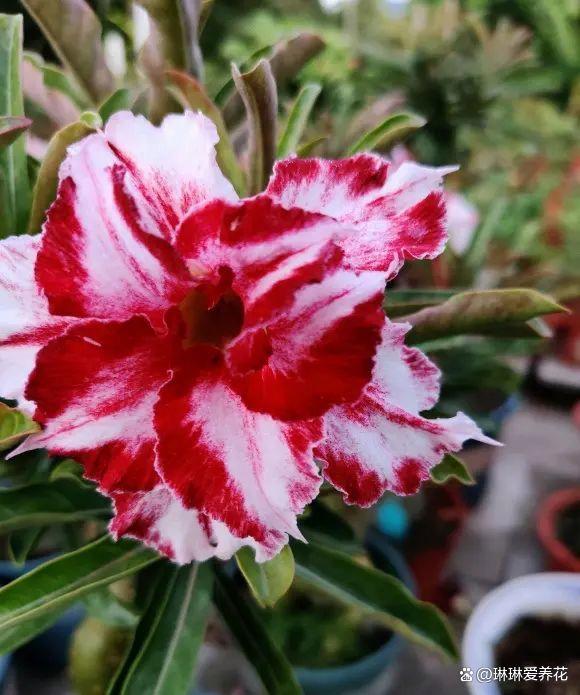 沙漠玫瑰怎么养?小盆养,用沙土种,20天1次水,很容易成活 沙漠玫瑰是夹竹桃科的植物,盛开的花瓣跟夹竹桃的花瓣也有些相似,开放的花瓣直径大概在5公分左右,不同品种的沙漠玫瑰开花的颜色和开花的样式也是不一样的,沙漠玫瑰的开花形式主要分为单瓣和重瓣之分。