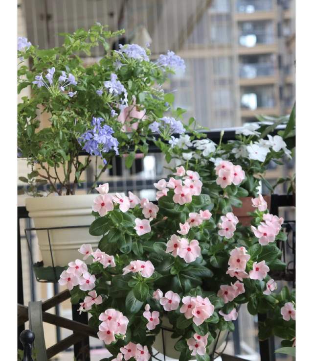 长春花也叫日日春,是一种灌木植物,优点在于花期漫长,几乎天天都开花,花朵颜色有深粉,浅粉,或白色,花朵粉粉嫩嫩,美得冒泡,可以剪成花球,悬挂于廊下窗前,非常优美。