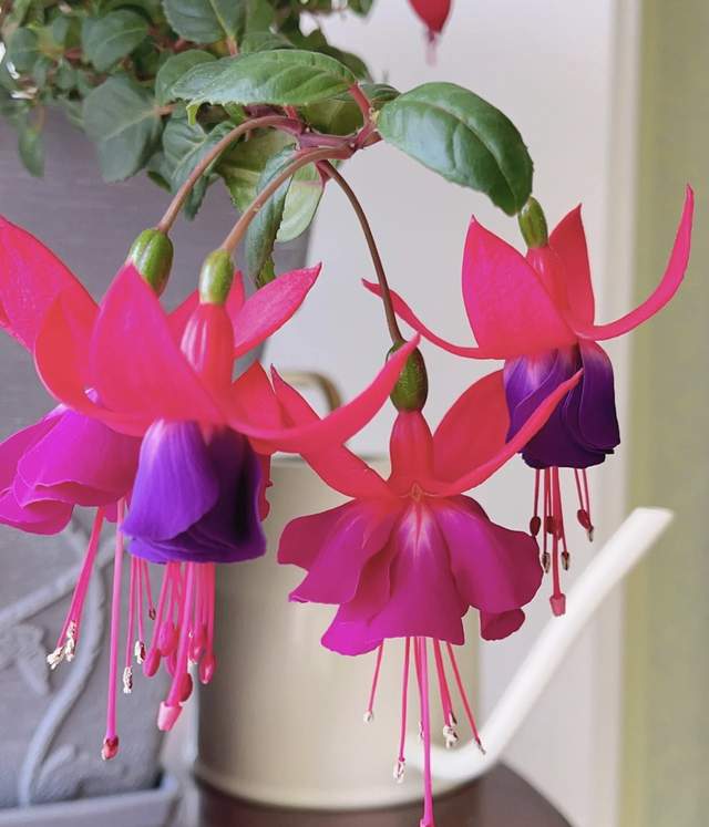 倒挂金钟也叫灯笼花,花朵就像一个个小灯笼,悬挂于枝头,摇曳生姿,自带喜感,可以给生活增添更多情趣。(www.ws46.com) 倒挂金钟的花期比较漫长,4到12月都能开花,中间会休息一段时间,大概是在温度高的时候,等到天气凉快,便会恢复生长。