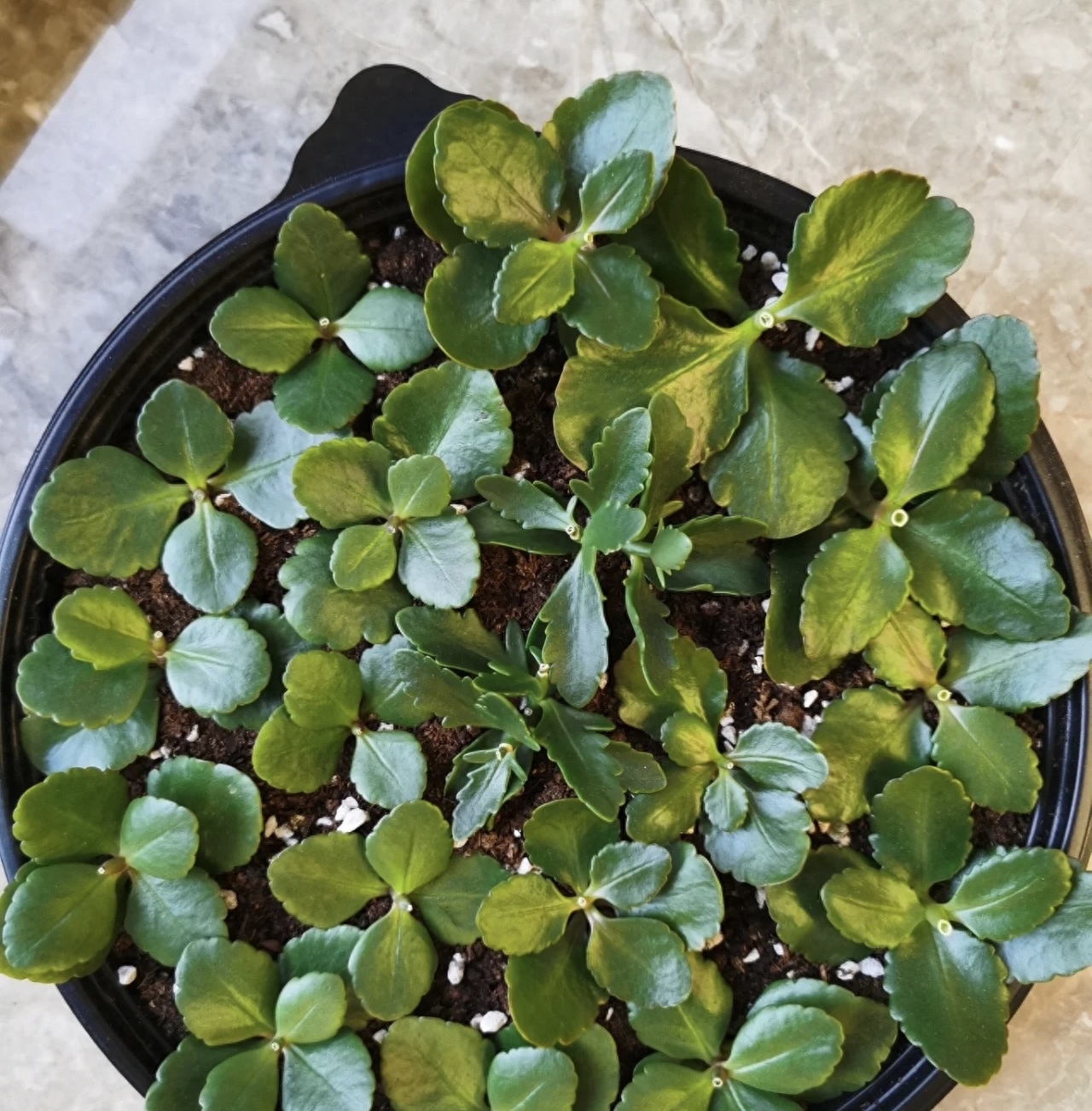 最后就是浇水的问题,长寿花的叶片,质地肥厚,比较饱满,花根都是一些须根,浇水太频繁,容易引起根系腐烂,浇水频率不要太勤,当然也要保证水分充足,毕竟是在生长期,可以在叶片稍稍发软之前浇水。而等到花期,记得控水,这样可以降低叶片和枝条的生长速度,防止只长叶不开花。