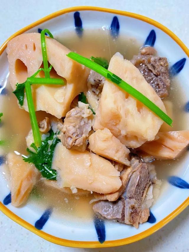 4、放在旺火上烧开后,转用文火炖20分钟后即可上桌。 怎么做藕炖排骨汤 1、主料:排骨(烫沸水后洗净),莲藕切片,海带结,葱段,姜片,枸杞。 2、辅料:料酒,盐,味精,酱油。 3、4-5饭碗水烧开,放进莲藕煮30分钟。 4、加入排骨,姜片继续煮60分钟。 5、加海带结,所有调味料煮10分钟。 6、放进葱段/枸杞煮约3分钟即可。 三、莲藕排骨汤的烹饪小技巧: 1、脆藕适合做菜,而粉藕才适合炖汤,大家不要选错了,莲藕非常洁白,如果切好不是直接就下锅煮,记得要将其放入清水中浸泡,防止其氧化了,这样莲藕的色泽便不美观,莲藕尽量切成稍微大点的块,不易被煮化;