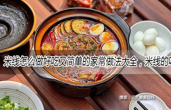 3、圆白菜丝、胡萝卜丝、泡发香菇、五花肉片、韭菜、蛋皮丝、米粉泡发、温水5分钟左右。 4、放多一些油炒圆白菜和胡萝卜然后放入香菇炒炒。 5、放米粉加入半勺生抽、半勺糖、半勺盐、小半碗水。 6、肉之前就炒熟了,所以最后放就可以了。 7、最后放入肉、蛋皮、韭菜、闷10分钟,差不多都熟了就可以。 做法三、家常米线怎样煮好吃 1、食材:米线1包,肥牛100g,金针菇50g,油菜心3棵,鸡蛋1个,生抽15ml,葱姜蒜米5g,白醋15ml,盐1g,红辣椒1根,泡椒6根,泡椒水适量。 2、做法:米线选新鲜熟米线即可,泡椒水根据喜好随意。鸡蛋可以根据喜好,摊成蛋饼,切细条做配料。 3、锅烧热,加少量炒菜油,放入葱姜蒜米和辣椒圈爆香锅底。泡椒连同泡椒水一起倒入锅中。