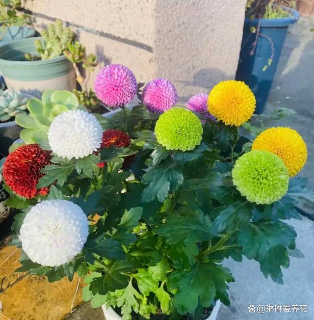 十几块钱一大盆的乒乓菊,买回家放置在阳台上开花一个月,一个月之后用剪刀把花瓣修剪掉,这个时候可以进行适当的追肥,放在有太阳光照的地方,花苞很快就会再次开放,只要养护环境适宜,一年四季都会陆陆续续不断盛开。
