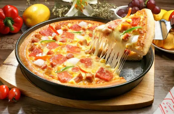 很多人都喜欢吃披萨,这是比较受欢迎的一种美食,它的做法比较多,口味丰富,食材多样,里面会有各种各样的肉类蔬菜以及水果等,有些人吃披萨里面会有黑色圈圈,这个是切片的黑橄榄,是很有营养的。