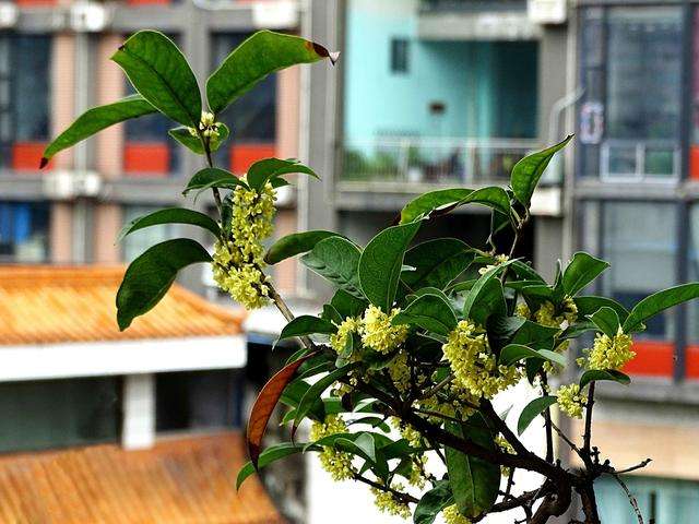 2、桂花 桂花,是中国十大传统名花中的一个。它的种类很多,四季常青,叶子茂盛,花朵娇艳,盛开的时候,香气四溢。 桂花具有散寒破结、化痰止咳、润肠通便、美颜养容等作用,常喝桂花茶可以缓解胀气、肠胃不适、健脾补虚、美白肌肤。 除此之外,桂花可以在一定程度上吸收空气中的氯气、二氧化硫、氟化氢等有害物质,