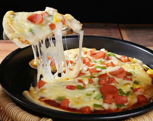 披萨是生活中比较受欢迎的一种美食,它的口味比较丰富,吃起来鲜香可口,很多人都喜欢吃。吃披萨的时候一般都会有拉丝,这个就是奶酪,也就是芝士,它让披萨的口感更加丰富,吃起来更美味。