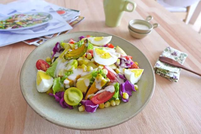 沙拉营养又美味,吃了不发胖,即使里面有肉,吃多了也不会长胖,因为使用的肉脂肪含量低。而且沙拉也是一道简单的菜,在家自己做也很值得。那我下面就把详细的方法告诉你,慢慢学。