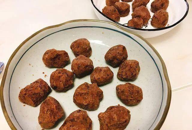 这回做的红豆沙,还专门用滤网把红豆的外壳滤,在炒的时候加了红糖和麦芽糖,口感特棒,刚炒好的时候,小家伙竟然以为是巧克力粉,就这么捧着吃了大半碗......