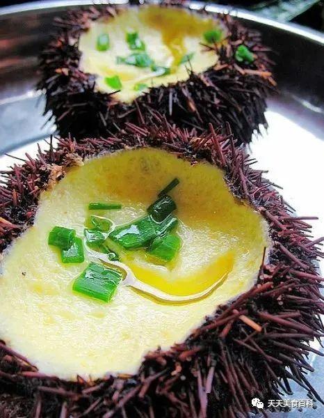 4.冰镇海胆:取海胆卵肉,用冷开水清净,装在碎冰垫底的盛器(盆、碟)上,冰与海胆隔层薄膜,食时蘸上调料,与生吃龙虾、赤贝、象拔蚌等类似,别有风味 5.生吃海胆,新鲜最重要,要吃就要吃真正的生海胆。 二、美食海胆的几种新吃法 做法一、海胆蒸蛋 材料 1个初生蛋,盐、鱼露适量,香油几滴,海胆, 做法 1、将一个鲜鸡蛋打散后加入盐,葱姜等调好味,倒入碗中备用。 2、放到已烧开水的蒸锅里,中火蒸三分钟左右,看到表面凝结,轻轻放上海胆,再蒸上一分半钟就好了。