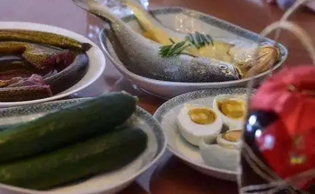黄鳝是端午节的必备食材之一,因其肉质细嫩、味道鲜美而备受喜爱,可以红烧、炖汤等多种做法。黄鱼也是端午节常见的美食,它含有丰富的蛋白质和钙质。黄瓜在端午节有祛暑的作用,可以生吃或凉拌。咸鸭蛋具有滋阴降火的作用,可以煮熟或切开食用。雄黄酒是端午节最具特色的饮品之一,有祛病消灾的作用,但饮用时需注意适量。