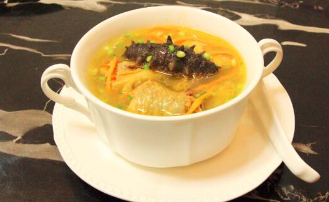 海参花汤需要的食材:海参花、猪排骨或鸡肉、姜、葱、盐、胡椒粉、香菜。步骤:将猪排骨或鸡肉清洗干净;清洗干净的海参花焯水,放入洗净的汤锅当中,烧开后撇去浮沫,加入姜、葱、盐、胡椒粉和猪排骨或鸡肉;加入适量的水,大火烧开后,用小火煮约1-2个小时;熄火后,加入适量的香菜即可。 |