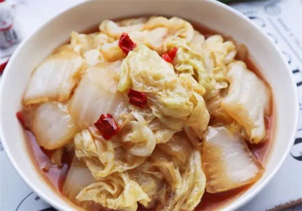 四、黄瓜炒鸡蛋 1.将黄瓜切成菱形片,然后将鸡蛋打散。 2.先炒鸡蛋,然后再炒黄瓜,最后加入调料翻炒均匀即可。 五、醋溜白菜 1.将白菜叶和白菜帮分别切好,热锅加油爆香蒜末和干辣椒。 2.然后加入白菜帮翻炒,再加入白菜叶炒至微熟,最后加入调料勾芡即可。