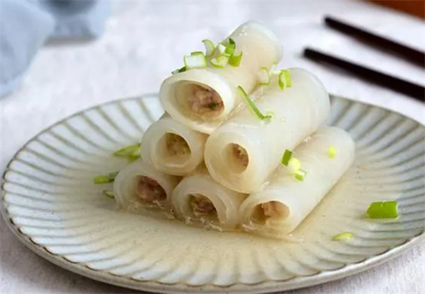 一、生菜鸡肉卷 1.这道菜的材料包括生菜、鸡胸肉、土豆和胡萝卜。 2.将鸡胸肉切成细丝,腌制十分钟。 3.将生菜的叶子洗净,土豆和胡萝卜切成细丝。 4.将鸡肉丝煮熟,然后将鸡肉丝、土豆丝和胡萝卜丝放在生菜叶子上,卷起来即可。 二、萝卜卷肉 1.将白萝卜切成薄片,然后将猪肉剁成肉末并腌制十分钟。 2.将肉馅放在萝卜片上,卷起来后蒸十分钟即可。 三、冬瓜虾仁 1.将大虾去皮并腌制,然后将冬瓜切成小块。 2.将冬瓜煮熟后,将虾仁和冬瓜一起翻炒,最后加入调料勾芡即可。