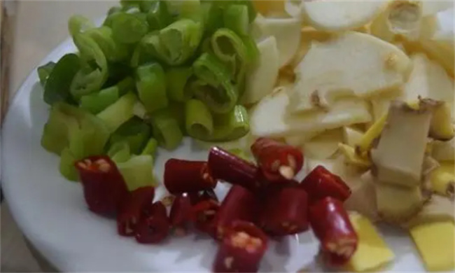 一、准备食材 1个猪肺 3条青红椒 适量的葱、姜、蒜和小米椒 1茶匙食盐 2茶匙生抽 2汤匙豆瓣酱 1汤匙耗油 1茶匙白糖