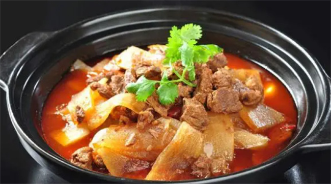 一、萝卜炖牛腩 1、准备食材牛腩500克,白萝卜1根,老抽1茶匙,盐1茶匙,鸡精1茶匙,料酒1汤匙,冰糖15克,芝麻少许,葱姜适量。 2、将洗净的牛腩置于开水内焯烫20分钟,焯烫后的牛肉切块备用,萝卜切块备用。 3、热油锅中加入葱姜爆香,接着加入切好的牛腩和萝卜煸炒。随后加入老抽、盐、冰糖、料酒和一碗水,转小火慢慢炖煮。 4、炖到牛肉和萝卜入味,即可加入鸡精进行调味,装盘后撒上芝麻。