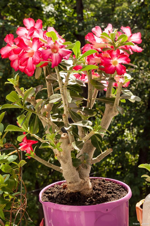 4、修剪 沙漠玫瑰幼苗的肚子膨大程度有限,因此想养出比较敦实的肚子,需要定期修剪,在开花前或开完花后进行即可。 种植沙漠玫瑰的注意事项沙漠玫瑰生性强健,喜欢温暖干燥、阳光充足的环境,适宜的生长温度为25~30度,忌水涝较耐干旱。冬天需温室养护,放置于室内向阳处,适当控水保持盆土偏干燥。 一般来说,沙漠玫瑰是不难培育的,关键是要注意一些保护要点,包括水肥、修剪、扦插等。当然,病虫害防治也很重要,通常在维护过程中要定期观察沙漠玫瑰的生长情况,然后采取正确的对策。