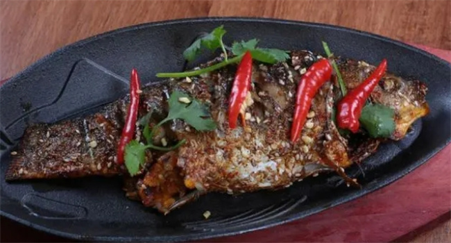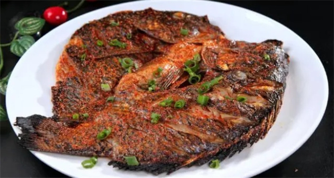 NO.4 烤罗非鱼 准备食材:罗非鱼1条,辣椒粉适量,椒盐适量,小葱1根(切成葱花),孜然粉适量,食油适量 具体做法如下:先把罗非鱼处理干净,沥干水分,然后放到烤架上面,把表面两面的水分烤干,接着用刷子在鱼的表面刷上一层食油,放回烤架上,烤至鱼出香味,食油在烤的过程中会滋滋作响,烤的时候记得经常翻面防止把鱼烤焦了,等鱼烤熟后,撒上辣椒粉,孜然粉,椒盐,再烤一会,最后撒上葱花,一道香喷喷的烤罗非鱼就做好了!