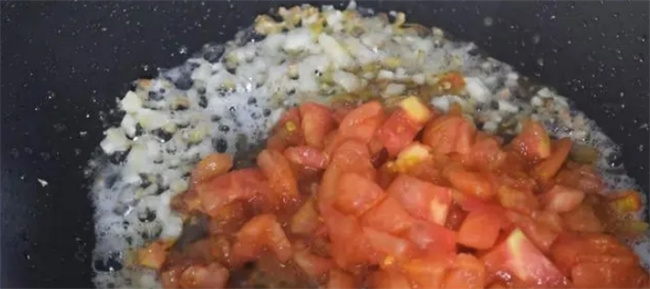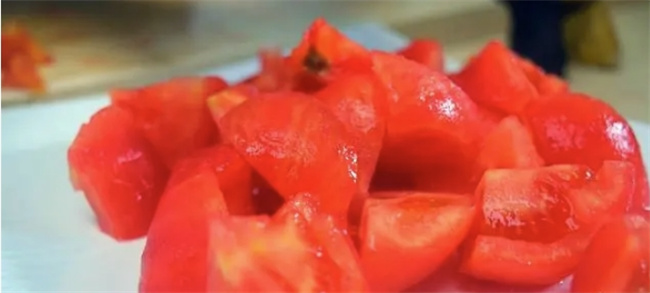 食材准备好之后,我们来处理食材,首先准备个汤碗,把番茄放到汤碗,加入没过番茄的开水,然后浸泡5分钟,接着,我们把酸菜切成丝,把生姜和大蒜剁成末,接着吧青红椒切成辣椒圈,等番茄泡好后,捞出去皮,然后切成小块,装盘备用!