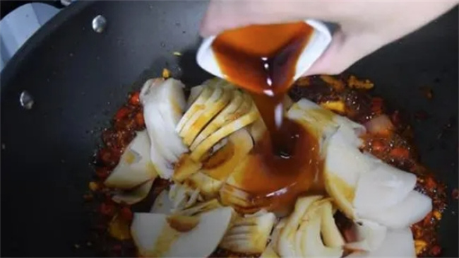 田螺过凉水后捞起,沥干水分,然后再撒入紫苏的叶子,备用! 接下来我们做汤料,起锅加入食油,油温烧至5成热,然后加入姜片,蒜片,小米椒段,小火炒香,炒香后加入2汤匙的豆瓣酱,加入2汤匙的火锅底料,小火炒出红油,炒出红油后,把切成片的酸笋倒入锅中,然后加入2汤匙的生抽,加入1汤匙的耗油,加入1茶匙的食盐,转成大火翻炒,把酸笋的酸味炒出来,炒好后加入1砂锅量的清水,然后大火煮沸! 汤料煮沸之后,我们就可以关火了,然后把汤料转移到砂锅中,盖上锅盖,把砂锅放到煤气灶上,用大火再次烧开,烧开后,转成小火,慢煮30分钟,把酸笋汤的酸辣味道煮到田螺里面去!