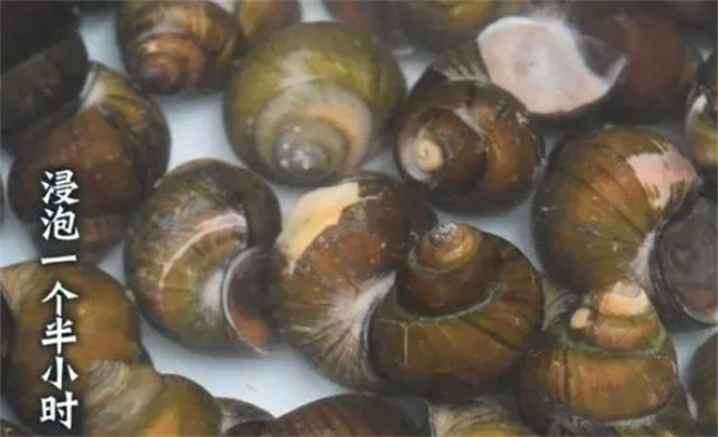 食材准备好之后,我们首先要做的就是处理食材,田螺买回来一般都是比较脏的,我们自己吃的当然要处理干净,首先用钢丝球把田螺的表面刷洗干净,然后再倒入清水中,用清水搓洗好几次,直到洗螺的水变得清澈,这时我们就可以把田螺装到水盆里,倒上3汤匙的食盐,浸泡一个小时! 接下来我们处理食材,首先把酸笋切成薄片,再把小米椒切成段,大蒜切成薄片,生姜切成薄片,小葱切成葱花,然后装盘备用! 一个小时后,我们把田螺捞起,然后用砍骨头的菜刀把田螺的屁股砍掉,砍完之后,起锅加入大量的清水,田螺冷水下锅,加入5片姜片,加入2汤匙的料酒,然后大火煮开,煮开后用小汤勺撇去浮沫,然后再把田螺捞起,过凉水!