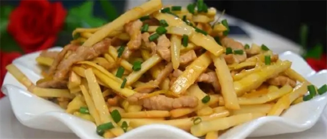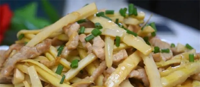说到新鲜的笋,相信不少的小伙伴都会想到春笋和冬笋,随着天气的转暖,冬笋慢慢的退出市场,迎接而来的是春笋的破土而出,没错,现在已经是吃春笋的季节了。走在菜市场上,我们可能都会见到到处都是笋类的食材!这期的美食教程,天健美食坊就拿细春笋给大家分享一道清新可口的春笋炒肉丝的家常做法,想学的小伙伴们就赶紧围观吧!喜欢美食的小伙伴也别忘了给我点个关注哦,我每天都会更新分享不一样的美食哒,相信总有一道会是你的菜! 春笋味道清淡鲜嫩,营养丰富。含有充足的水分、丰富的植物蛋白以及钙、磷、铁等人体必需的营养成分和微量元素,特别是纤维素含量很高,常食有帮助消化、防止便秘的功能。所以春笋是高蛋白、低脂肪、低淀粉、 春笋有“利九窍、通血脉、化痰涎、消食胀”的功效,现代医学证实,吃笋有滋阴、益血、化痰、消食、利便、明目等功效。小儿患麻疹的时候,可喝嫩笋尖做的汤,使麻疹出透,缩短病期;用春笋熬粥,还对久泻形成的脱肛有很好的疗效。现代医学则认为,竹笋具有吸附脂肪、促进食物发酵、有助消化和排泄作用,是减肥者最理想的食物之一。 生笋含蛋白质、氨基酸、脂肪、糖类、钙、磷、铁、胡萝卜素和维生素B1、维生素B2、维生素C等成分。竹笋不但富含多种营养物质,而且有较高的药用价值。中医认为,竹笋味甘、微苦,性寒,能化痰下气,清热除烦,通利二便。