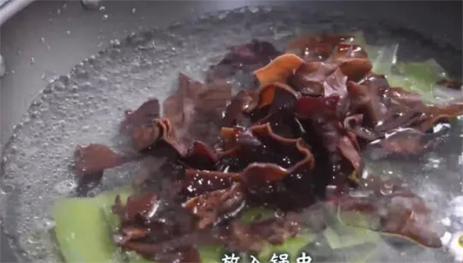 所有食材都处理干净之后,我们接下来开始焯水,起锅加入大量的清水,大火煮开,水煮开之后,加入1汤匙的料酒,加入1小勺的食油,然后把切好的木耳和莴笋片放入锅中,等水再次煮开之后,再煮个2分钟!