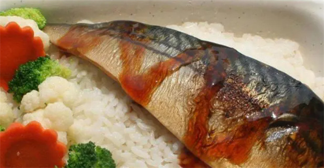 2. 香煎鲐鱼饭 将焯水过的胡萝卜花和西兰花摆到米饭上,然后将鲐鱼放入平底锅中煎至表面焦黄,撒上少许食盐和黑胡椒粉。最后将煎好的鲐鱼放到米饭上,再加上少许番茄酱即可。