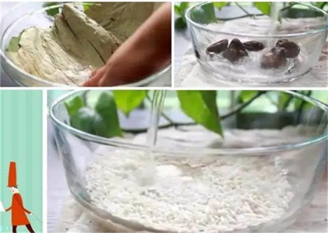 食材准备好之后,我们先把要处理的食材准备好: 排骨如果买回来没有剁的,用菜刀剁成小块,然后清洗干净备用!糯米用清水先浸泡两个小时,让糯米适当的泡发一下,这样做的目的是为了让糯米在蒸煮的过程中比较容易熟!荷叶用温水泡软一下,生姜切片备用!香菇用温水泡软,泡软之后切成小粒备用!