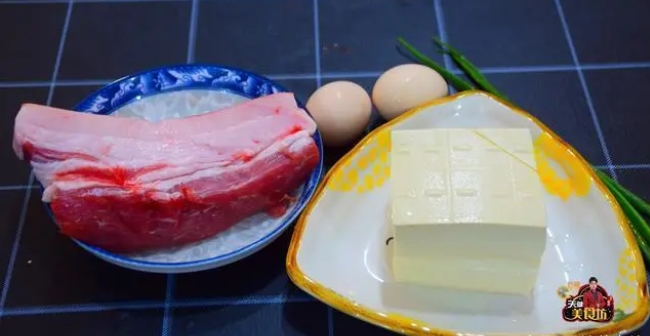 在开始正式制作之前呢,我们首先需要准备以下食材:白豆腐2块,五花肉500克,鸡蛋2只,小葱2根,食盐1茶匙,生抽2汤匙,蚝油2汤匙,淀粉20克,花生油1小勺,胡椒粉1汤匙