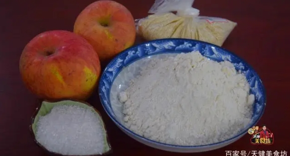 在日常生活中,作为水果的苹果,大多数的人都是直接吃的,其实苹果除了直接吃,还能做成很多不一样的美食,就比如这期的美食教程,天健美食坊要给大家分享的这道【苹果馅饼】,口感软糯,香甜不腻,解馋又耐饱,如果你是个吃货,一定不能错过。喜欢吃苹果的朋友们,就一起来看看我是怎么做的吧,喜欢美食的朋友们,也别忘了给我点个关注,我每天都会更新分享不一样的美食教程,相信总有一道会是你想学的菜肴哒! 在开始正式制作之前呢,我们首先需要准备以下食材:苹果2个【500克】,面粉300克,白糖60克,白芝麻适量,水淀粉适量