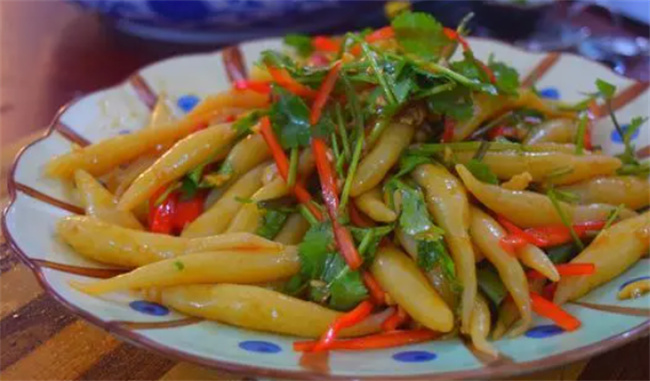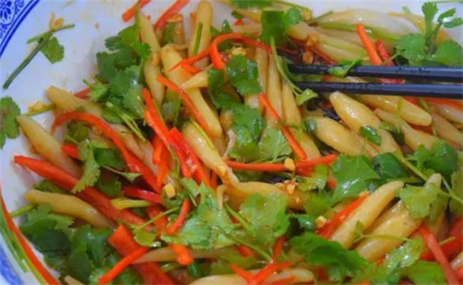 一、土豆的营养价值极高 是十大热门营养健康食品之一。土豆可以进行多种烹煮方式,包括蒸、煮、焖、炸、炖等,口感和味道都很出色。想必很多人都对土豆有着不同的吃法和做法。 二、土豆小面鱼制作方法 1、需要准备食材 1个土豆、1勺面粉、1勺淀粉、5瓣大蒜、2棵香菜、1根红辣椒、半茶匙食盐、2汤匙生抽、2汤匙陈醋、2汤匙花椒油、2汤匙辣椒油。 2、制作步骤: 第一步,将土豆洗净、去皮,切成块状。然后蒸熟后,捣成土豆泥。加入1勺面粉和1勺淀粉,搅拌均匀,揉成光滑的面团。 第二步,把面团制作成小面鱼的形状,类似于蝌蚪的形态。 第三步,起锅加入2瓢清水,加入半茶匙食盐,水开后放入面鱼大火煮熟至漂起,然后捞出来放到冷水里降温。 第四步,等面鱼过凉后,用漏勺捞起控干水分,放入汤盆后加入切好的辣椒、蒜、香菜;再加入2汤匙生抽、2汤匙陈醋、2汤匙花椒油、2汤匙辣椒油,最后用筷子搅拌均匀即可。