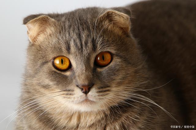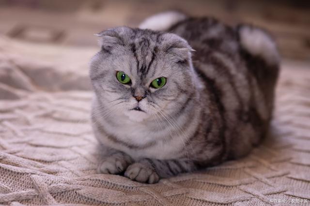 折耳猫的特征 苏格兰折耳猫的爬像体型:中等体型,圆浑浑的,骨骼中等,肌肉结实。雌性的体型较雄性的细小。四肢短,粗壮,肥胖,浑圆。体重2.5到6公斤。 头:圆形,前额凸鼓。脸颊浑圆。侧看像是缓和的曲线。公猫的肉更多,成年雄 猫允许有双下巴。 耳朵:朝前折,间隔大,耳尖呈弧形。耳朵的大小中等,向前翻折,如同帽子,看上去令头部更加圆浑。 鼻:宽而短。微微有鼻中断是可以接受的。吻部微微呈圆形。髭毛垫呈圆形。下巴坚实。