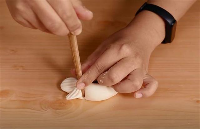 6.用筷子夹紧,这样这个鱼的形状就出来了。