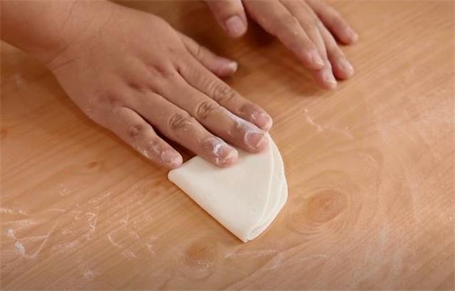 22.做第三种造型的时候把小面剂直接压扁,擀成面片,擀完面片之后先后对折两次。