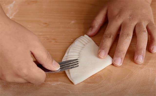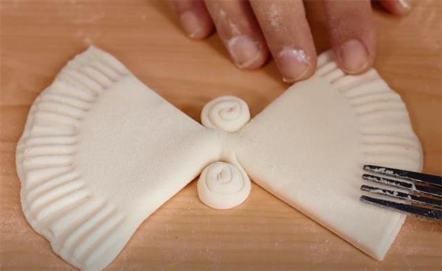 15.再用叉子压出花纹,然后把尾端捏一下。