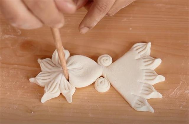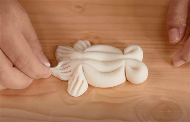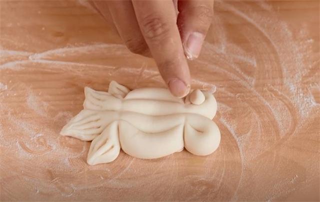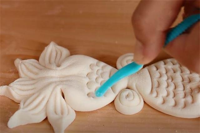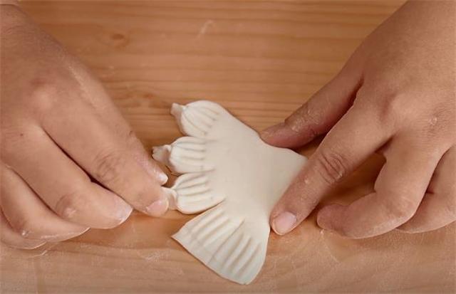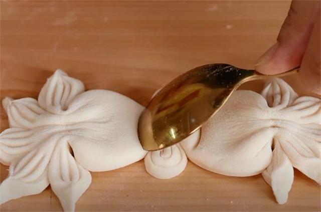 20.接着再用勺子压出来纹路,这个就是鱼鳍了。