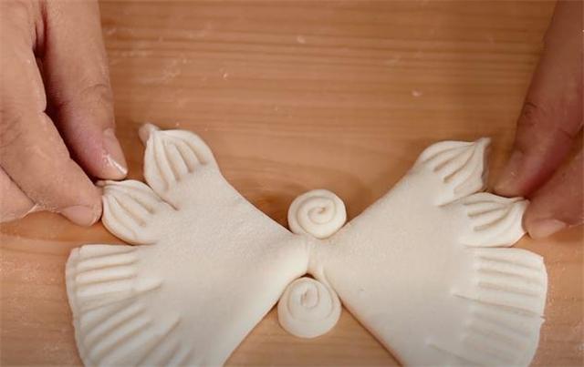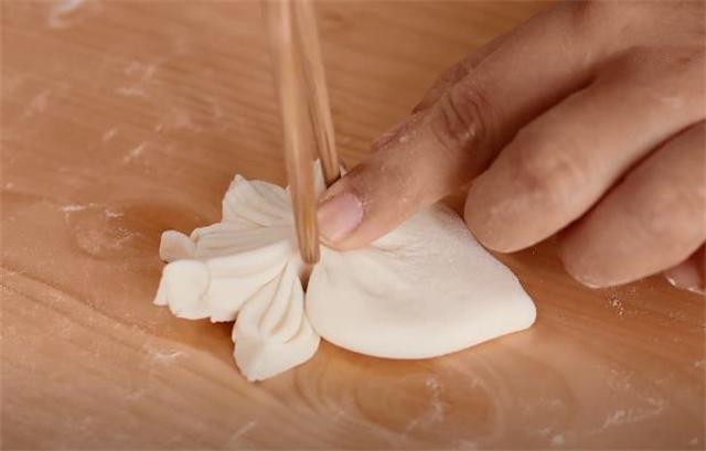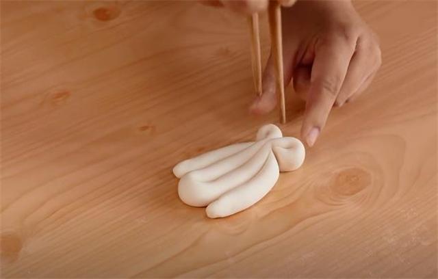7.用筷子顺着这个花纹的地方往里一捏,这尾巴的形状就出来了。