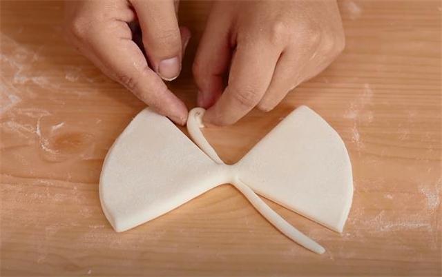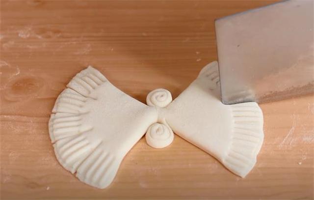 23.先做鱼尾的部分,照样用叉子压出来纹路。