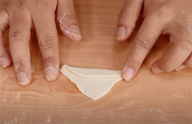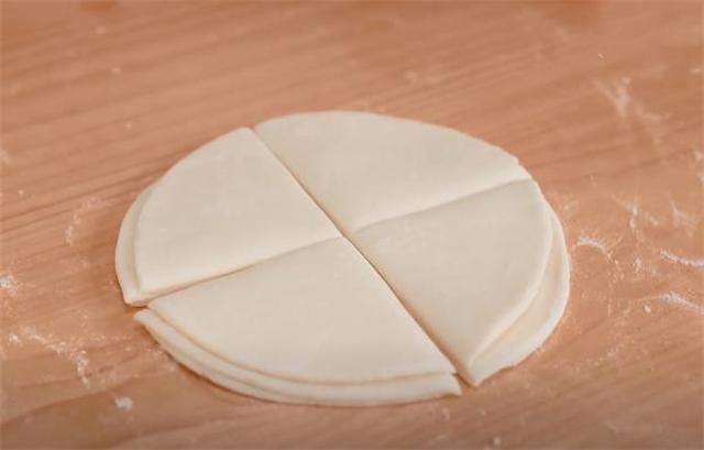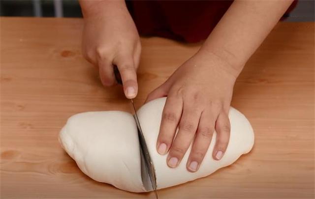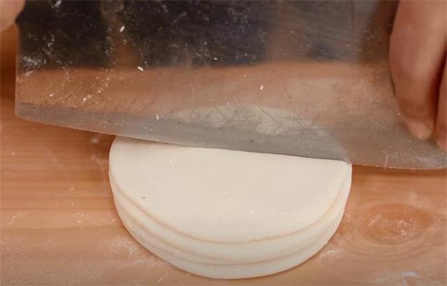 15.最后我们再摞四张面片,中间的位置对半切开。