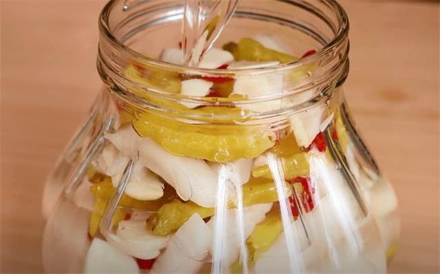 5.然后装进一个无水无油的干净瓶子里,最后的时候倒上晾凉的醋汁。