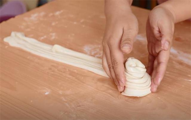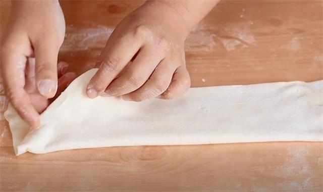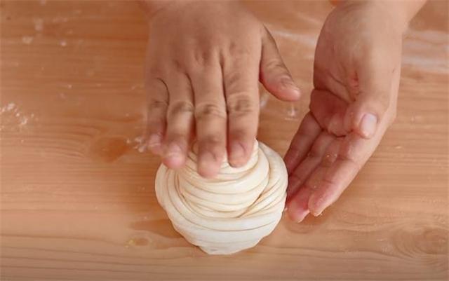 12.有了油的滋润之后,剂子这个面团会变得更加柔软,擀的时候很好擀开。